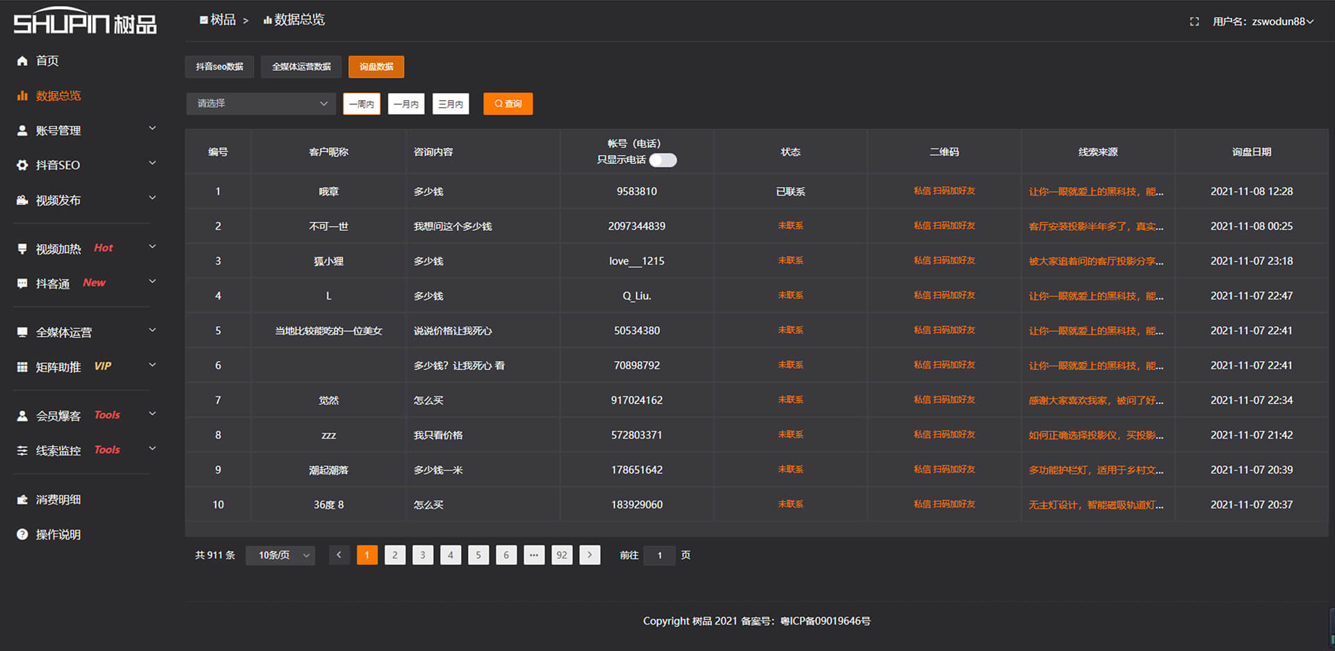 詢盤(pán)數(shù)據(jù)報(bào)表